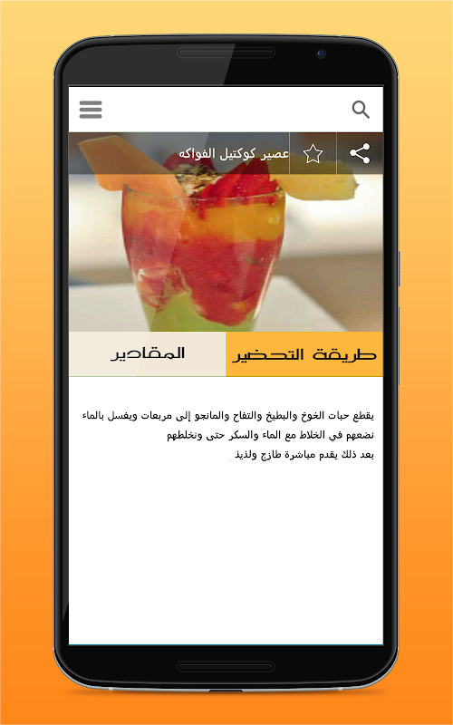 • إمكانية مشاركة وصفة العصير أو المشروب