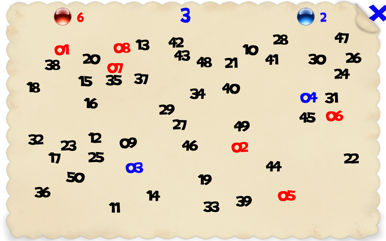在游戏中,您必须尽可能快地用眼睛和手找到从1到50、100或150的所有数字。有2种模式供您选择:单人或对战(与朋友一起玩):
