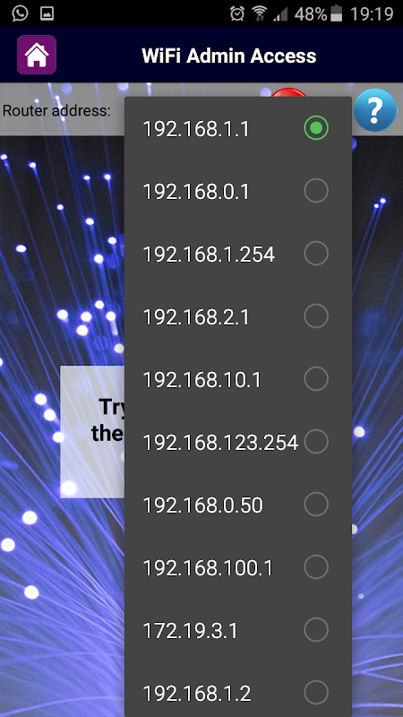 This app is a simple tool that helps you to find your router's address (address like this 192.168.0.1 or 192.168.1.1) and get access to your WiFi administration page.