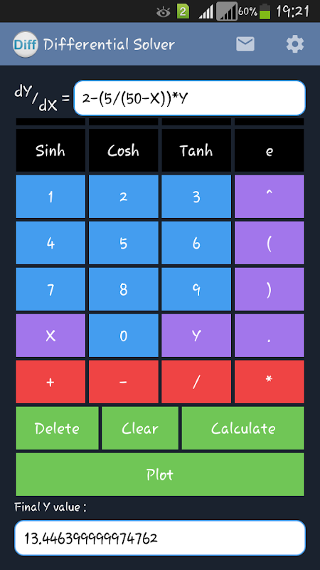 - Based on capability and limitations of Android system the maximum difference in initial and final X for “Calculate” and “Plot” as fixed as “50” and “30” respectively. For Y at a range greater than 30, use the step process described above. (For larger ranger of 400 and 100 for calculation and plotting, Please try Paid App)