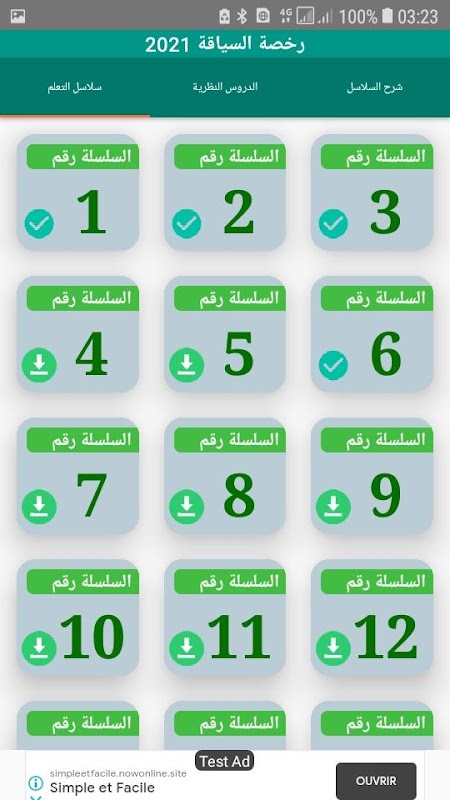 • أكثر من 1000 سؤال موزعة على أكثر من 25 سلسلة لممارسة قواعد السياقة.
