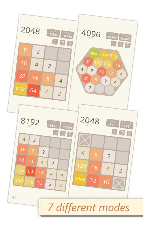 全新趣味 2048 游戏,拥有 8 种不同的挑战模式。