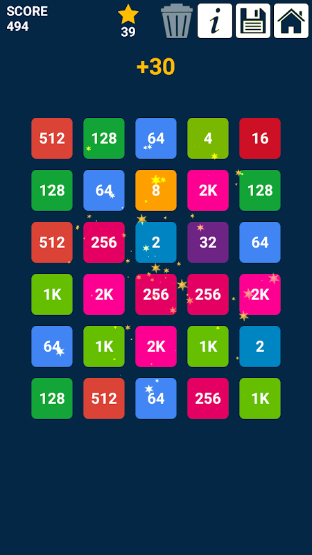 交换和合并2048是一款全新的Match-3益智游戏。只需交换2个数字即可匹配3个或更多相同的相邻数字,以将其合并为下一个更高的数字。