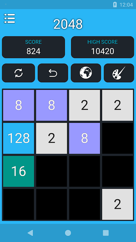 With the help of undo feature, You can easily Highest Score: Create Tile 2048 is first challenge. However you can achieve Tile 4096 or Tile8192, 16384, 32768, 65536, 131072 More.