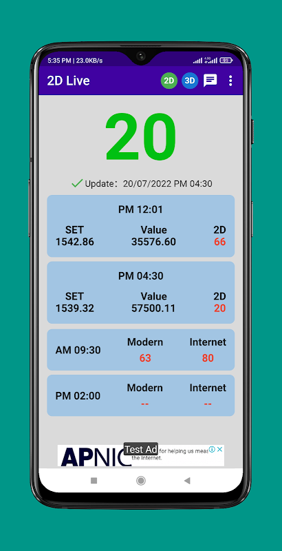 - 此应用程序提供 2D3D 实时比分和 2d3d 实时数据。