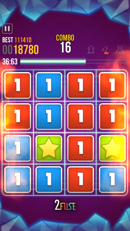 2FUSE是个节奏快的游戏,玩家需要高强的手感,灵活的反应才能够与其他玩家争夺第一宝座!只需将相同号码及颜色的牌子结合并升级,就能够使用不同的能力!