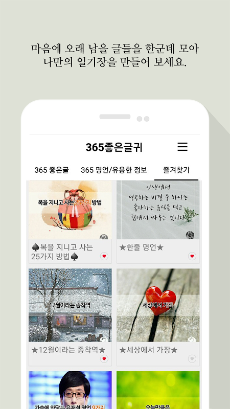 APKPure 使用签名验证功能,确保为您提供无病毒的 365좋은글귀 - 좋은글귀, 좋은글 모음, 명언 모음 APK 下载。