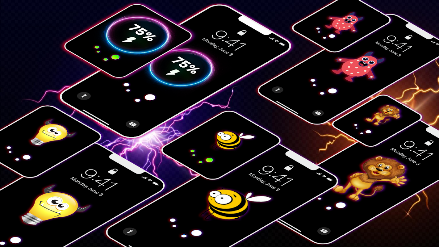 通过酷炫的风格和充满活力的动画让您的电池充电屏幕变得栩栩如生。