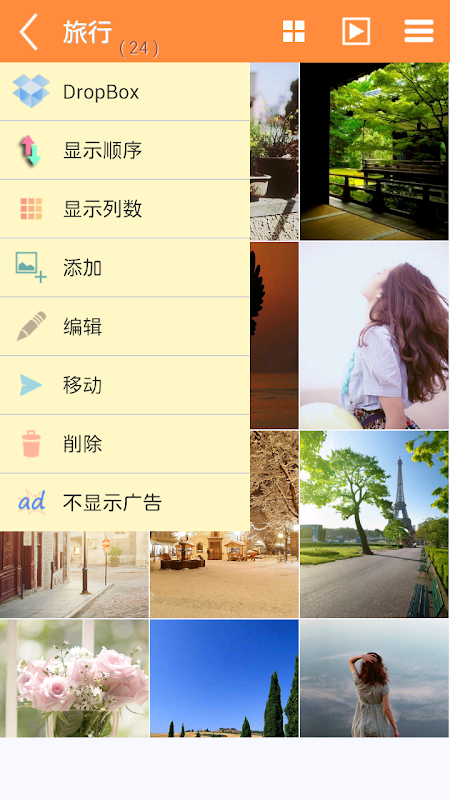照片分类,幻灯片播放,与朋友分享,设置动态壁纸,给照片添加日志,以及各种设置。