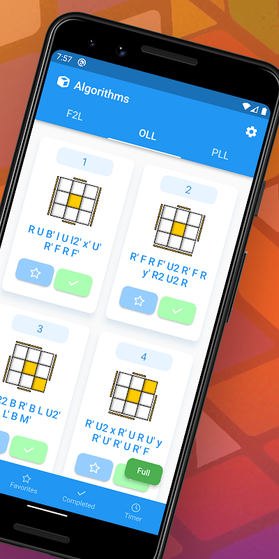 使用我们的专业应用程序掌握 3x3 立方体。通过精确的描述学习 Fridich/CFOP 方法的流行算法(Cross,F2L [First Two Layers],OLL [Orientation of the Last Layer],PLL [Permutation of the Last Layer])。