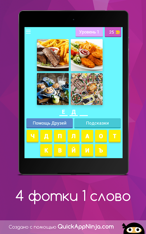 Как только начинается игра, Вы увидите на экране своего смартфона (планшета) 4 картинки и буквы. Ваша задача найти общее между фото - это и будет загаданное нами слово. Наберите его, используя буквы внизу экрана