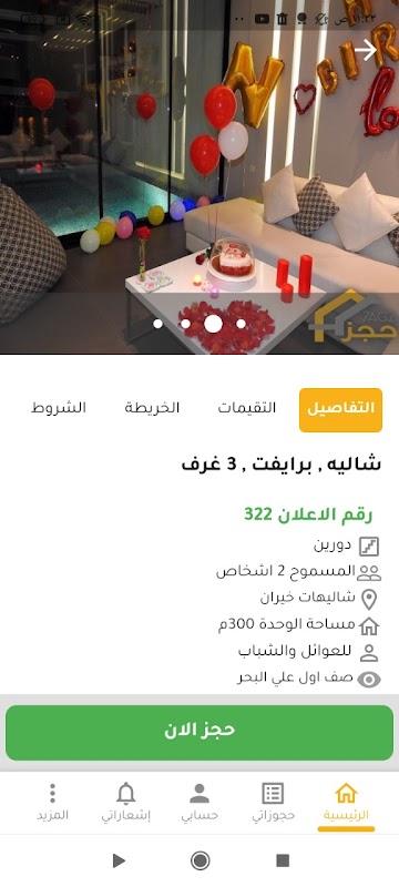 تطبيق حجز لحجز شاليهات، استراحات، مخيمات، مزارع و أكثر