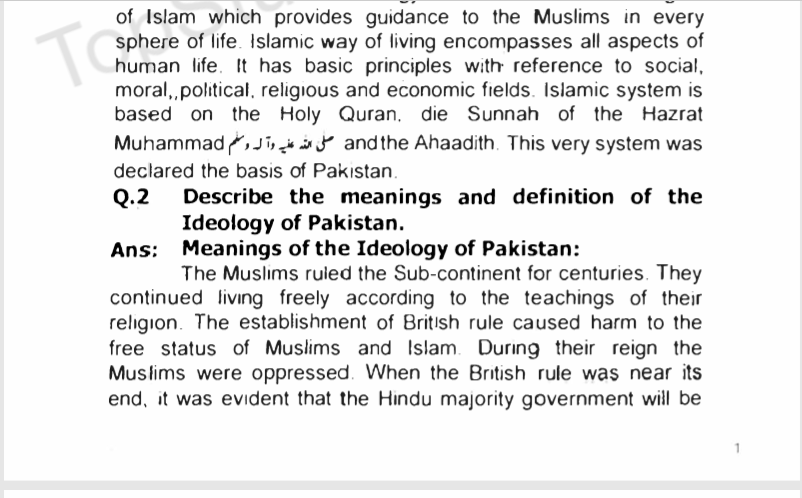 fbise pak studies notes 9th class