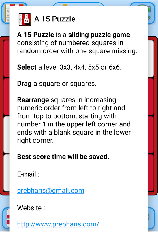 15 Puzzle 是一款滑动拼图游戏,由随机顺序排列的编号方块组成