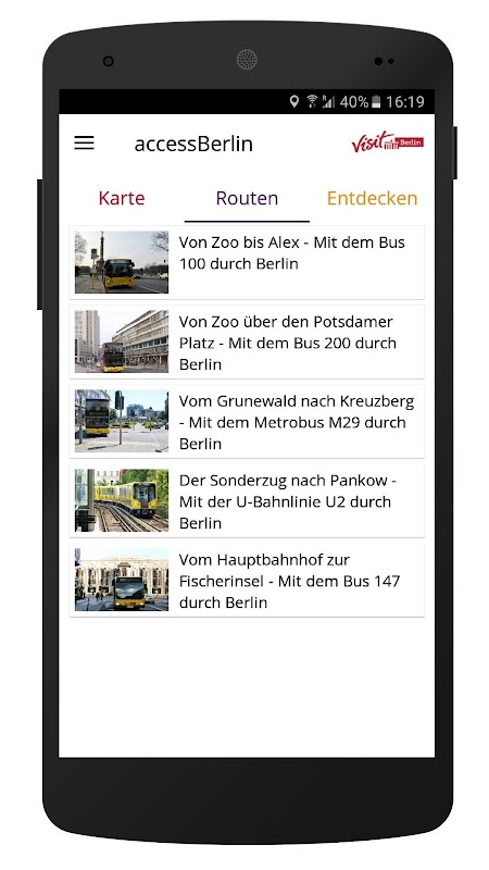 Jedem Ort ist eine naheliegende, barrierefreie Haltestelle auf mindestens einer der fünf Routen zugeordnet. Mit unseren Tipps für Bus & Bahn und den barrierefreien Wegbeschreibungen finden Sie von dort komfortabel zu Ihrem Ziel.