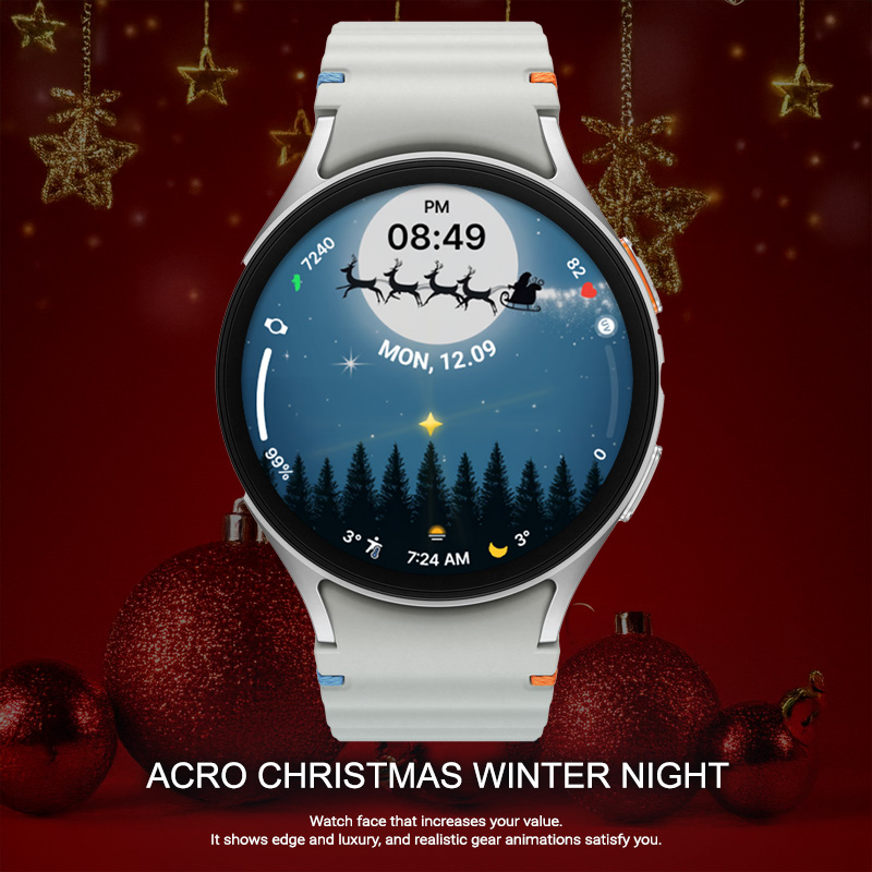 寂静的圣诞夜空、鲁道夫和圣诞老人的雪橇数字表盘