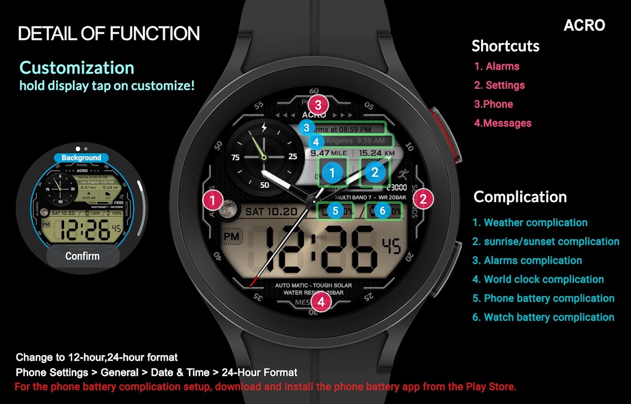 通过以下链接将附加应用程序安装到您的手表和智能手机后,设置复杂功能。