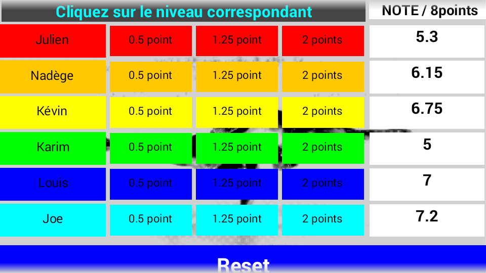 这是对教师,学生不是一个应用程序。它应该允许,以节省时间和简化执行Acrosport的评价。它可以直接使用在该领域,但它仍然必须知道井规模要舒适在其使用。本申请也可以使用回顾性看通过设置由学生进行的各动作后的断裂和通过完成表在此时拍摄的一系列视频。有那么多的计算做,应用程序会完成所有的。