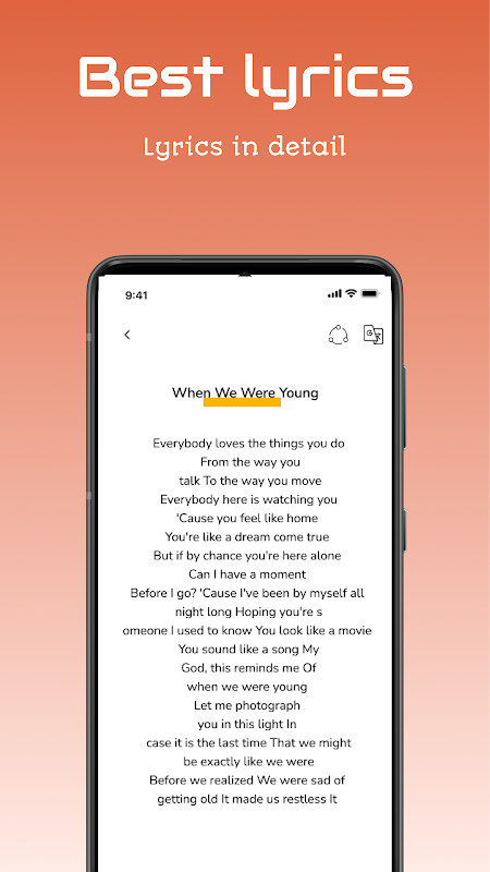 触手可及即可发现阿黛尔歌词的终极合集。无论您是铁杆粉丝还是休闲听众,我们的应用程序都旨在让您更接近阿黛尔的音乐天才,并提供一系列可增强您的聆听体验的功能。