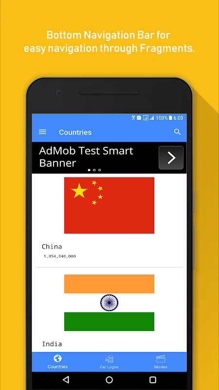 This App features Bottom Navigation Bar for simple and easy navigation through Fragments.