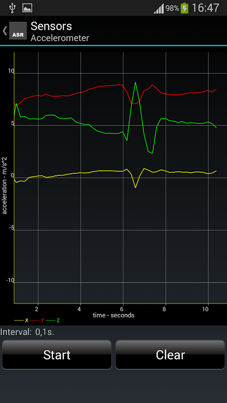 Advanced Sensor Recorder (ASR) shows the available sensors of your smartphone or tablet, plot graphics and allows to record sensor data for future use. Using of Google Maps API allows to show your GPS data on the map (it depends on version of OpenGL ES of your device).