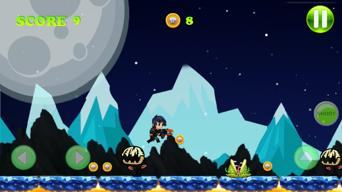 il contient quatre touches, l'une à droite et l'autre à gauche et boutton SHOOT pour tuer les ennemis pour voir passer à l'autre coté et la dernière à sauter