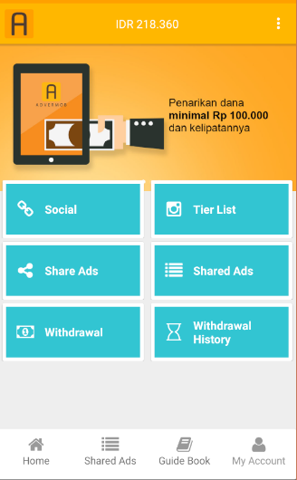 Selamat!! Setelah anda menunggu selama 3 hari lalu “Claim Rewards” berbentuk uang. Anda dapat mentransfer uang tersebut ke rekening bank anda. Bagikan iklan lebih banyak untuk mendapatkan penghasilan tambahan lebih. “Be Social and Get Paid!”.