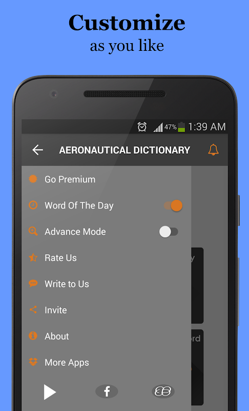 It contains more than 18,000 word meanings from every branch of Aeronautical engineering and updated every hour with new words. It is your ready referencer and a trustworthy guide, always ready for help. Download and use this Dictionary app for better and fast learning.