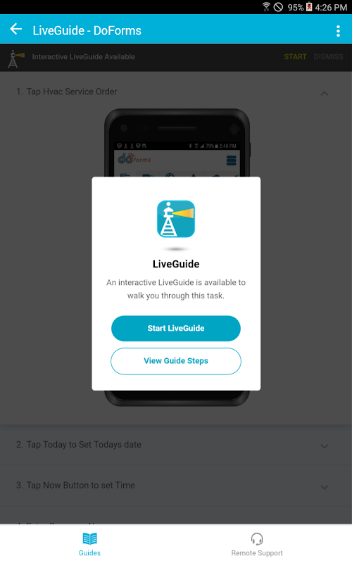• GuideMe LiveGuides leverage patented technology to provide always available contextual help in your enterprise apps, so users can access guidance, without leaving their app or breaking their workflow. LiveGuides don’t just show users how to complete a task within an app, they interactively guide users through each step of the tasks with in-app live context-sensitive app overlays and audible instructions. GuideMe's LiveGuides ensure that users don’t miss a step, without error, to complete their business-critical tasks.