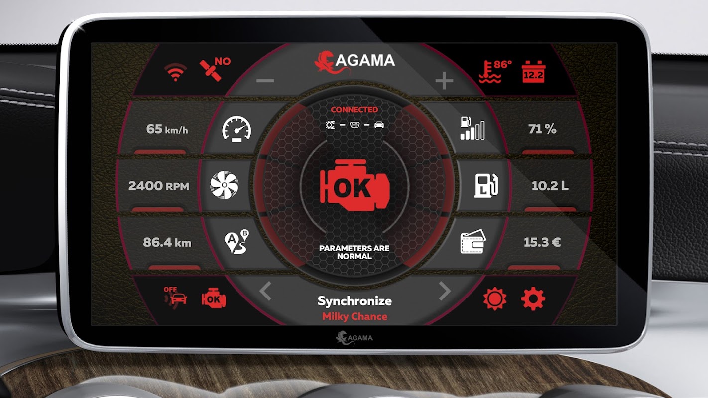 AGAMA 汽车启动器适用于运行 Android 操作系统的仪表板单元和音频系统,以及汽车中使用的 Android 手机和平板电脑。