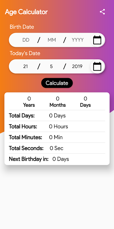 Age Calculator lets you to calculate your age accurately from your date of birth provided.