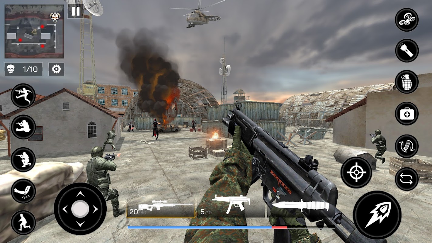 This fps commando strike shooting game will make you a specialized army commando and you will be a master of all the weapons in gun games 3d. You have to continuously conquer the terrorists' hideouts and you will unlock the most powerful weapons that will help you gain more victory as a tactical fps commando and save the world from evil terrorists in secret missions. With all the powerful modern war weapons you will be able to unlock more challenging territories and more challenging real commando shooting games experience. So don't wait and start your battle with terrorists for survival today!