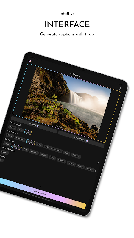 停止花费数小时集思广益的标题! AI 字幕 - 图像字幕可帮助您为每个时刻制作完美的文本。立即下载,让您的帖子令人难忘!