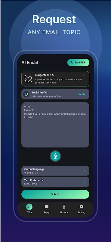使用我们的电子邮件助手应用程序探索人工智能增强通信的力量。我们的应用程序旨在简化您的电子邮件撰写流程,使您能够轻松创建引人入胜的电子邮件和回复。我们的人工智能驱动生成器非常适合撰写新电子邮件和回复消息,它会接收您的输入并将其转换为完美的书面内容。