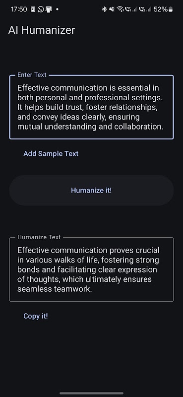 简单直观的界面:轻松粘贴文本,单击“人性化”,即可获得精美的结果。