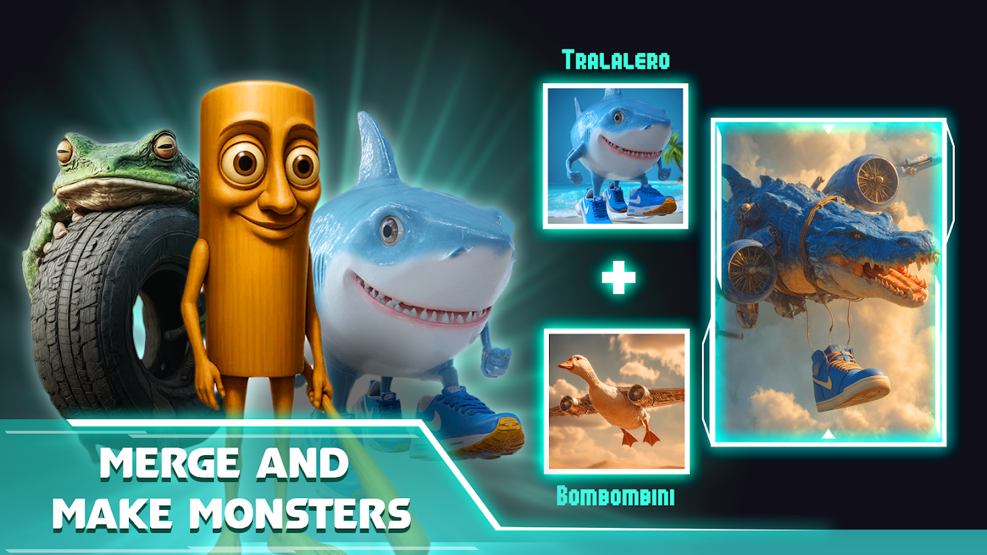 混合并匹配超过 500 个独特的英雄、恶棍,是的 - 甚至是那些疯狂的、著名的脑残角色,如 Brr Brr Patapim、Tung Tung Tung Sahur 和 Tralalero Tralala。拥有超过 10,000 个人工智能驱动的融合组合,每一次组合都是一个等待发生的疯狂惊喜!