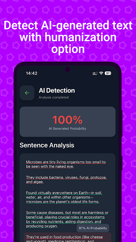 根据您的需求和使用限制选择要运行的分析。获得详细的交互式结果,突出显示文本中的特定问题。高级功能包括 AI 支持的修复,例如改写抄袭内容或人性化 AI 编写的文本。