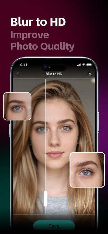 • 一键增强:锐化模糊图像、修复低分辨率照片、恢复老照片、去除人像模糊、提升至 4K/高清