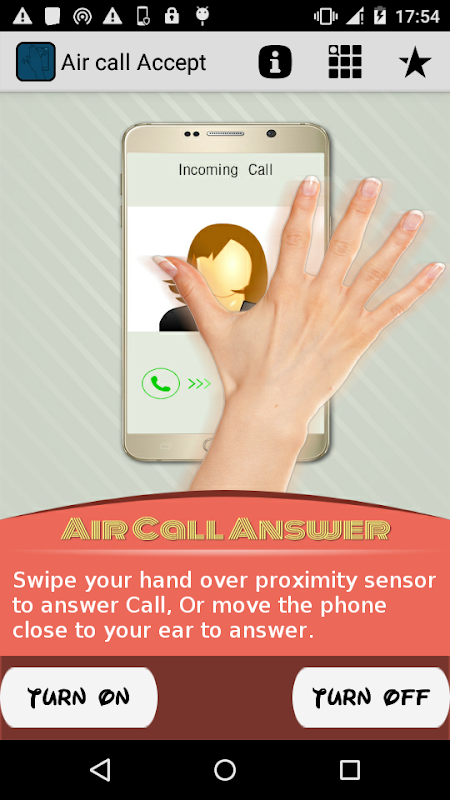 你能回答与此应用程序的调用,每当你无法触摸屏幕。通过刚才给空中的姿态就可以接听您的电话。这就像在空中呼叫接收。