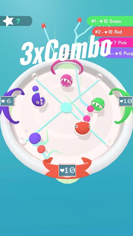 4名玩家在一张桌子上得分并防守得分。每个玩家都有10分,这取决于您的得分或失分。您的快速移动和注意力非常有趣的游戏!