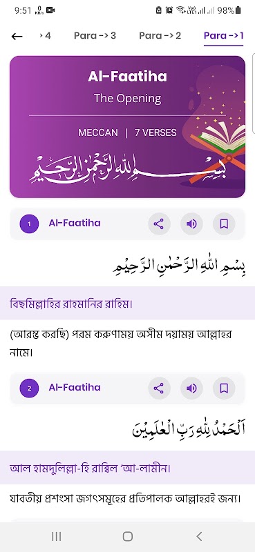 ▪︎孟加拉语发音Surah和Para视图。
