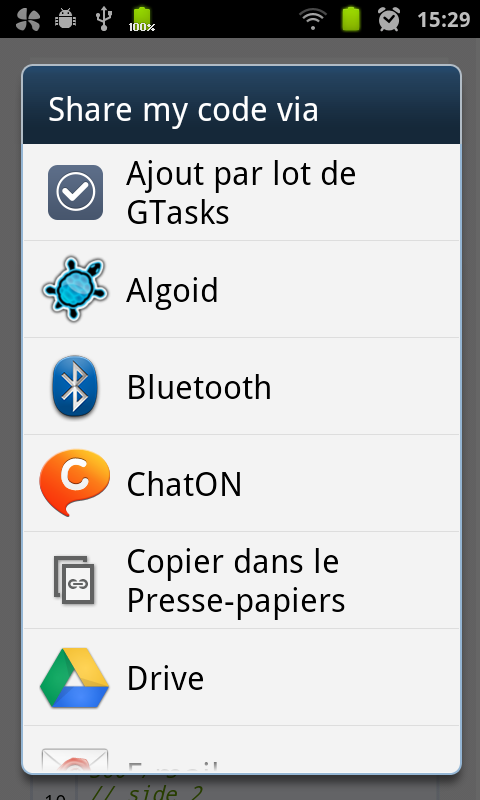 ★ Possibility to share code with the Algoid app (if installed)