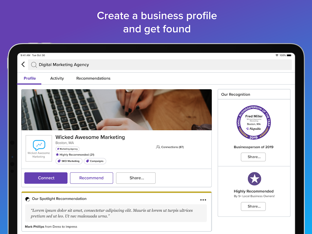 “Alignable 将本地企业主聚集在一起,创造商机。真是个很棒的平台!”