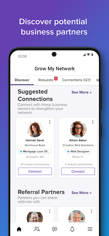 发掘您人脉网络中尚未开发的商业潜力。体验 Alignable 精准人脉的力量。我们的技术会根据您的具体业务目标,帮助您与最有价值的人建立联系。我们的人工智能工具还能帮助您大规模地进行个性化引荐。