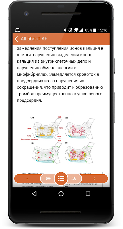 это мобильное приложение на русском языке, которое в удобном формате раскроет для Вас все современные аспекты диагностики, лечения фибрилляции предсердий и профилактики тромбоэмболических осложнений. Приложение является вспомогательным справочным пособием.