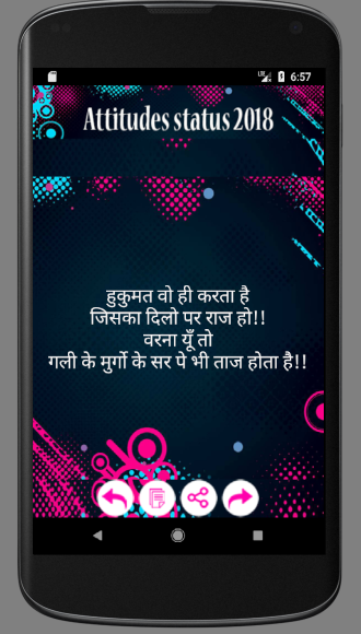 it contains All Attitude Status and Hindi Attitude Shayar and latest hindi Attitude shayari.