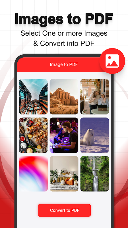 • 只需轻按几下即可将图像转换为PDF。
