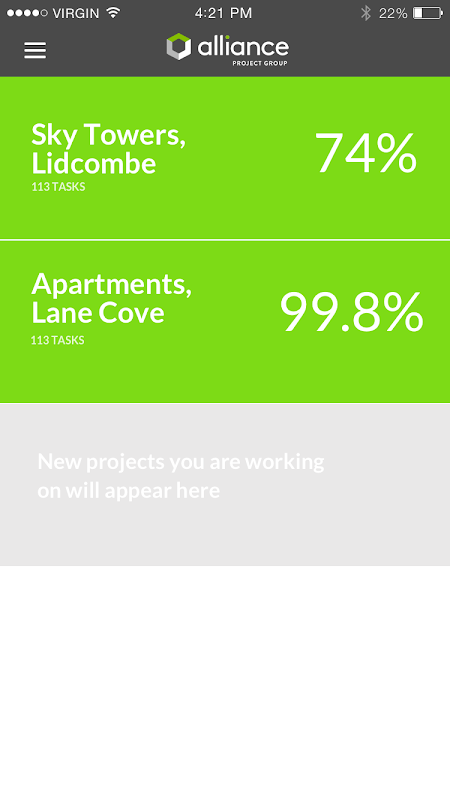 Please note, this app is only available for Alliance Project Group team members. Please contact your system administrator to set up your account.