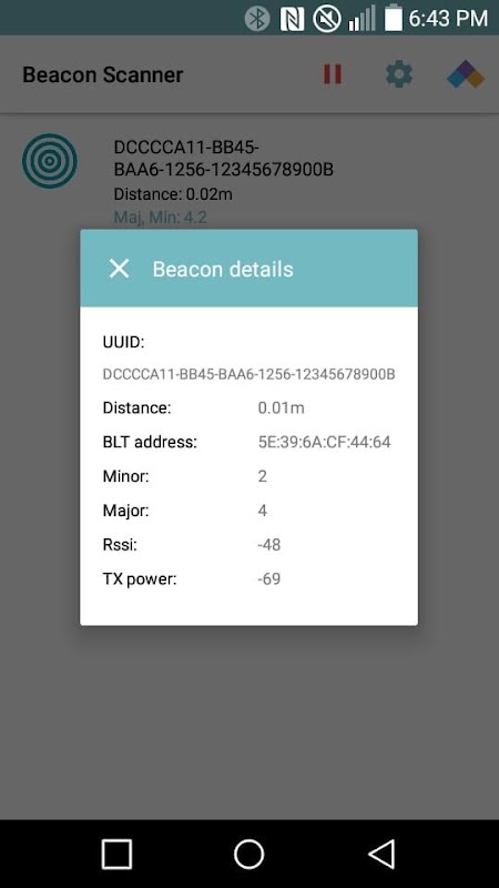 In order to use Beacon receiver feature, your device must have a BLE (Bluetooth low energy) hardware support with Android 5 (lollipop) and above.