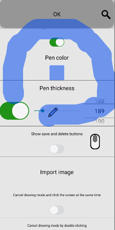 绘制模式:长按即可进入绘制模式,笔触粗细和颜色均可自定义。